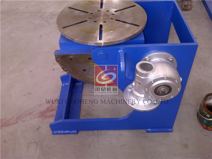 此100KG变位机是根据机器人使用厂家专门设计的机器人辅助设备。采用西门子高精度电机减速机,通过扇形齿轮带动回转工作台实现0°—120°范围内调节。翻转、回转以及到位精度高,可以通过翻转和回转配合机器人系统实现自动化焊接,是机器人系统不可缺少的辅助设备。